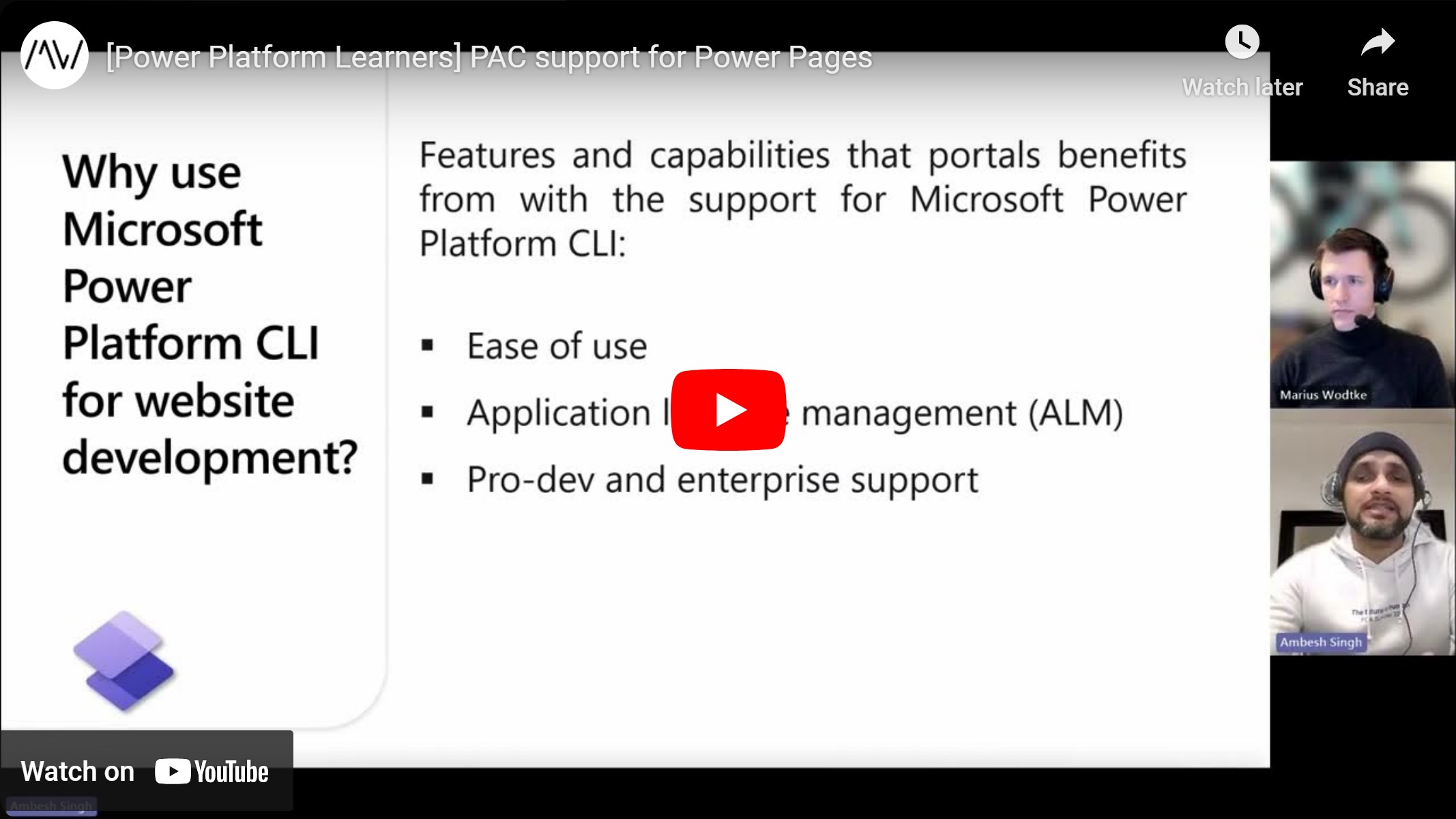 This episode of the Power Pages Quick Tips is about the Power Apps CLI (aka PAC or Power Platform CLI) and how it can be used for a more ProDev experience with Power Pages. It enables us to download and upload a given Portal, for example, to move between stages or build up version control.